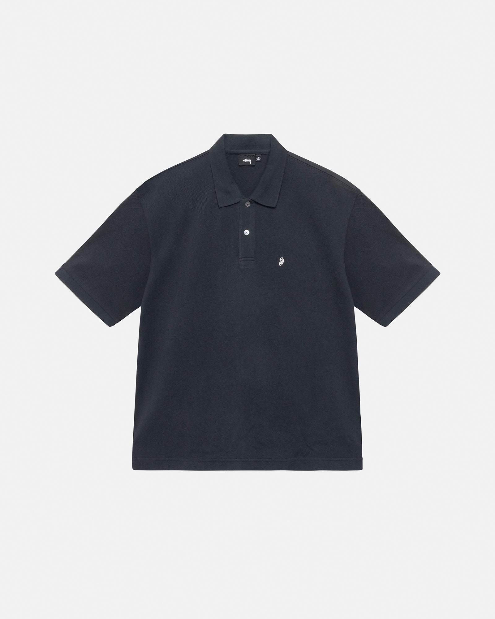 Classic fit pique polo shirt in midweight cotton. Stüssy swirly “S” embroidery at chest. - Rib knit collar and cuffs >br>- Shortsleeve - Mother of pearl buttons - Classic fit - Unisex - Material: 100% cotton - Imported