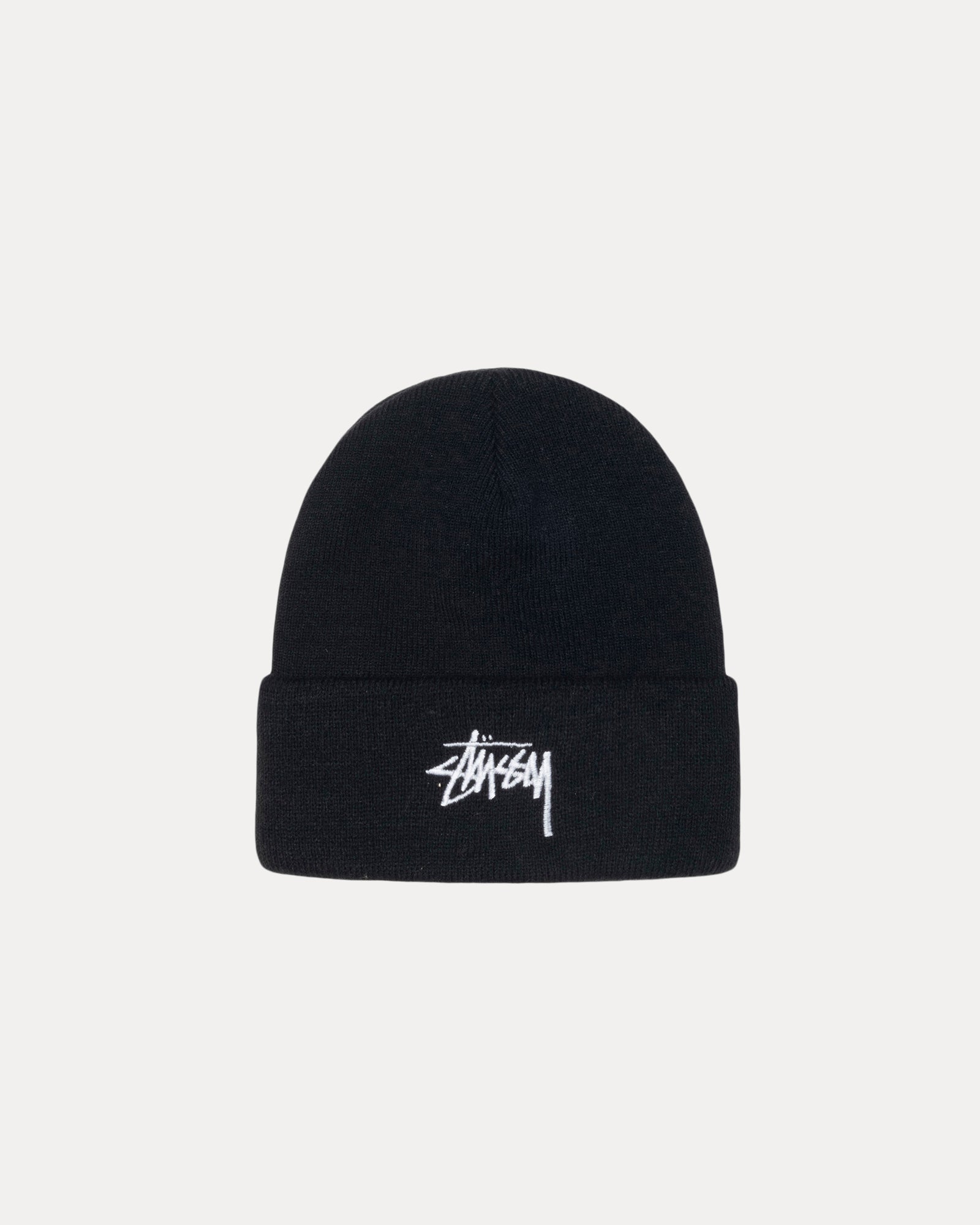 Fitted cuff beanie with Stüssy stock logo embroidery at the front. - Wide cuff - Classic fit - One size - Unisex - Material: 100% acrylic - Imported