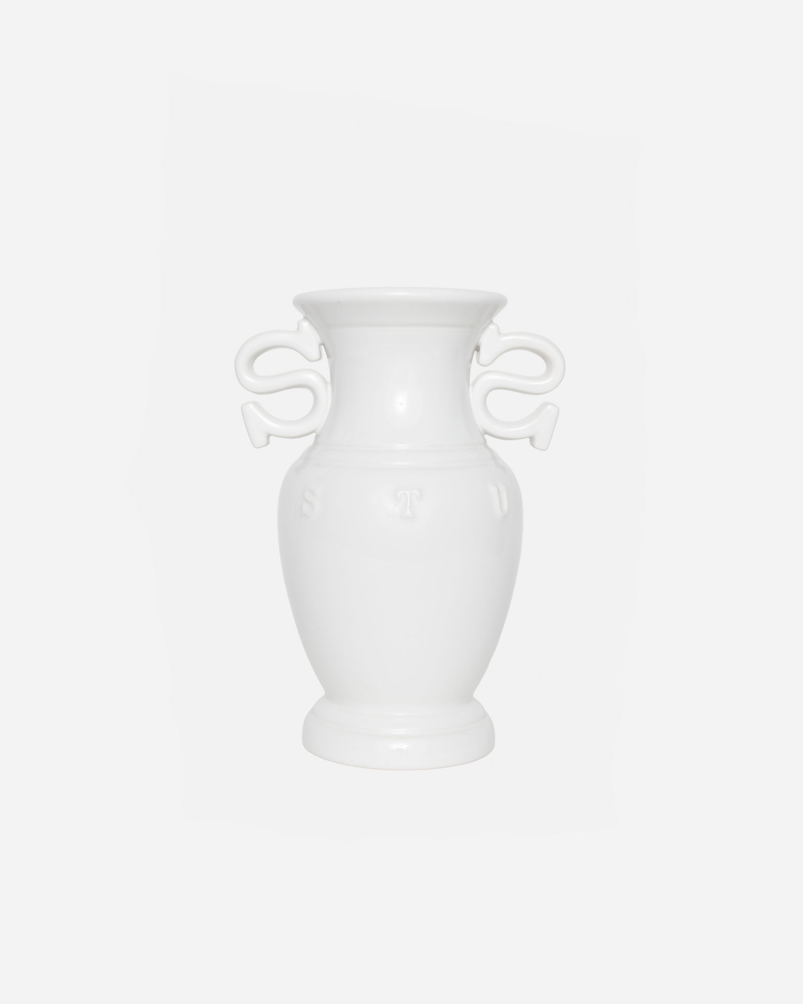 Glazed ceramic vase with S-shaped handles and embossed Stüssy branding. - Circumference: 4" / 10.5cm - Height: 39" / 23cm - One size - Material: 100% ceramic - Imported