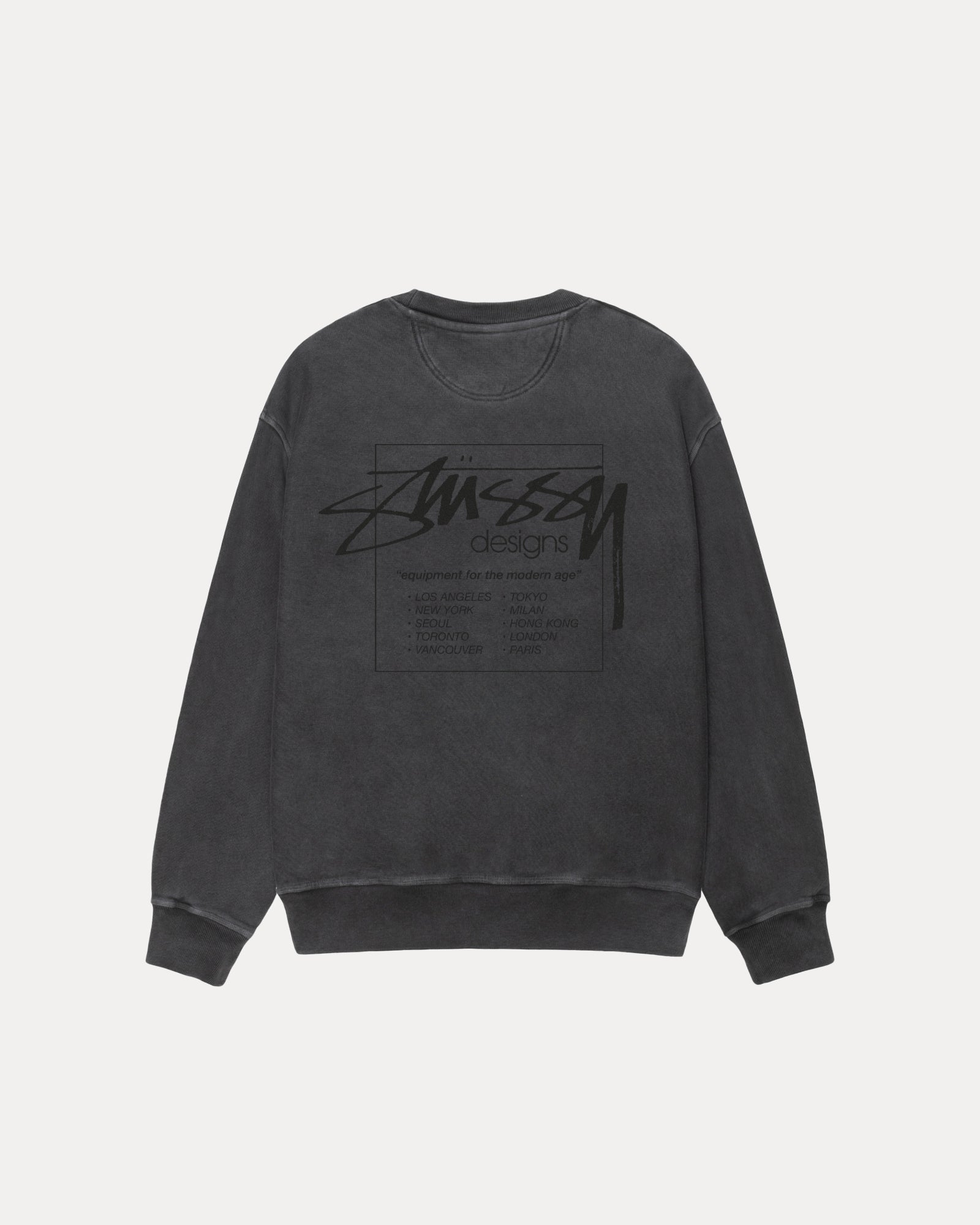 Relaxed fit pigment dyed fleece sweatshirt in heavyweight 450gsm cotton. Screenprinted at front and back with water-based ink for a soft handfeel. - Crewneck - Longsleeve - Ribbed neck, cuffs and hem - Relaxed fit - Unisex - Material: 100% cotton - Imported *This garment has been individually dyed, producing a one-of-a-kind result. Color may fade or bleed after wash.